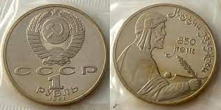 Монета 1 рубль СРСР 850 років з дня народження нізамі гянджеві