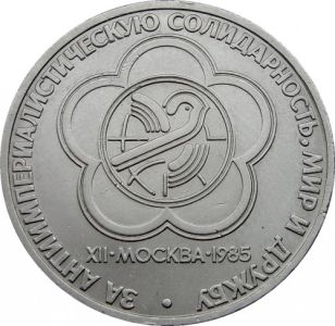 Монета 1 рубль СРСР. За антиимпериалистическую солидарность, мир и дружбу